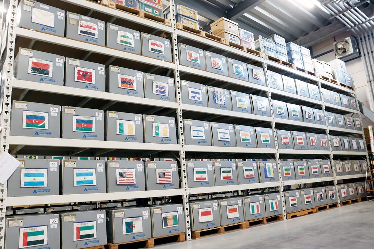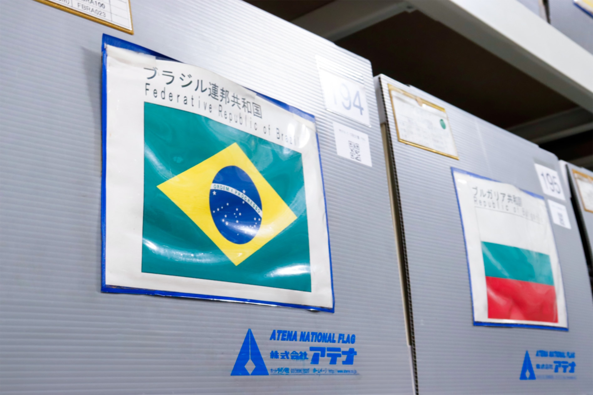 日本随一の国旗保管庫を保有し、国連加盟国および未承認国あわせ220カ国以上の各種国旗を常備。セレモニーごとに来日国の確認を受けたうえで国旗および掲揚器具を製作し、販売、レンタルしています。